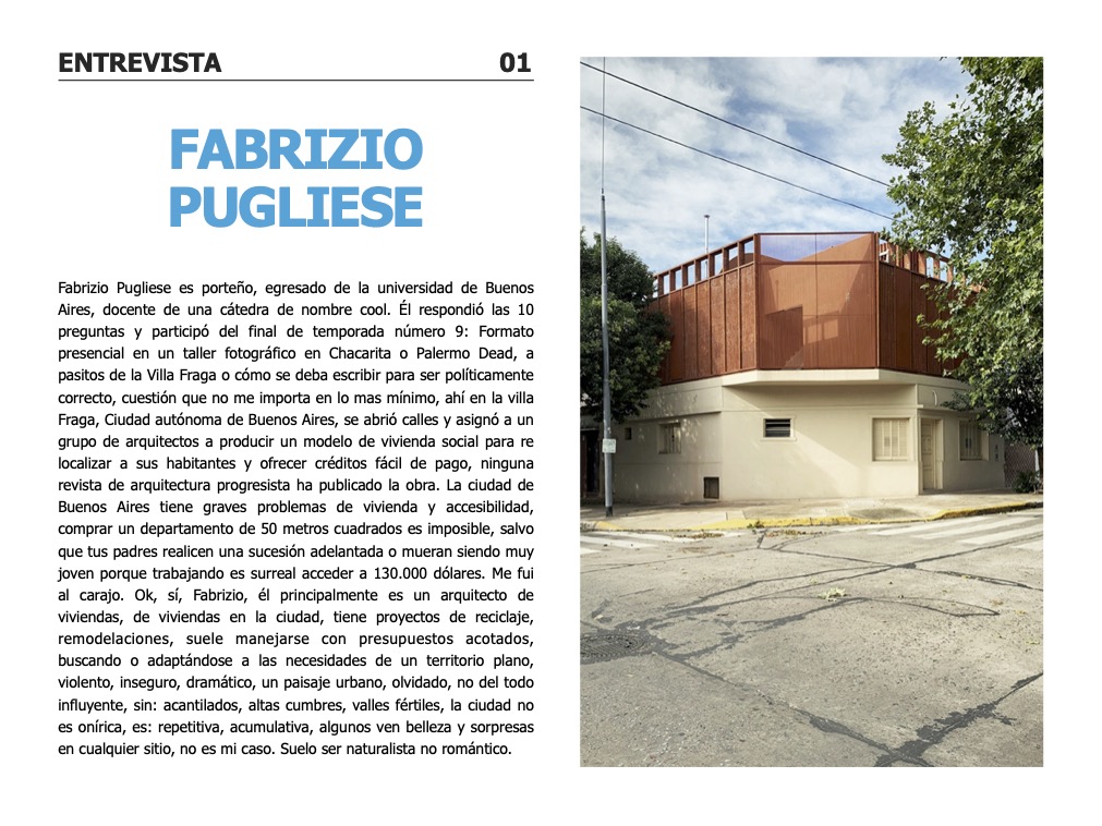 Entrevistas a: Fabrizio Pugliese / Elena Risso / 3370 Studio / Sergio Fanego / La cabina de la Curiosidad / Taller General. Secciones con: Juan Manuel Rois / Luciano rossi / Pablo Llorca