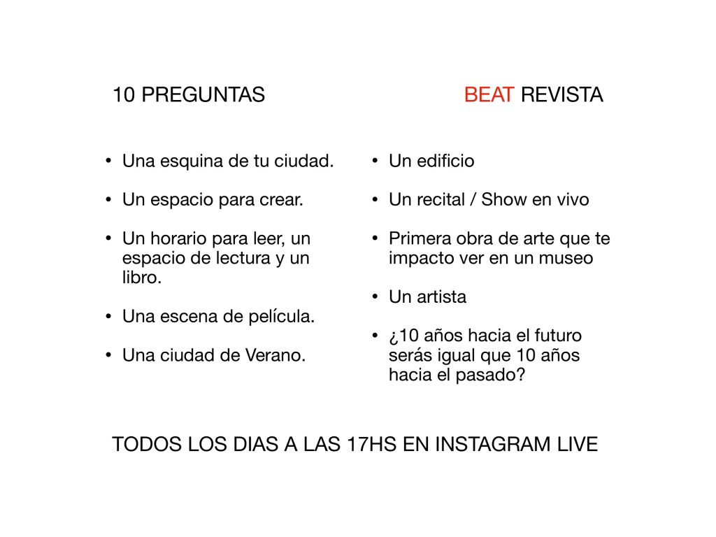 Todos los días a las 17 horas, horario Buenos Aires, realizo entrevistas…, 10 preguntas, la metodología es: EnvÍo 10 preguntas. Todos respondemos las mismas preguntas, no hay jerarquías. Todas respuestas diferentes de las mismas preguntas.