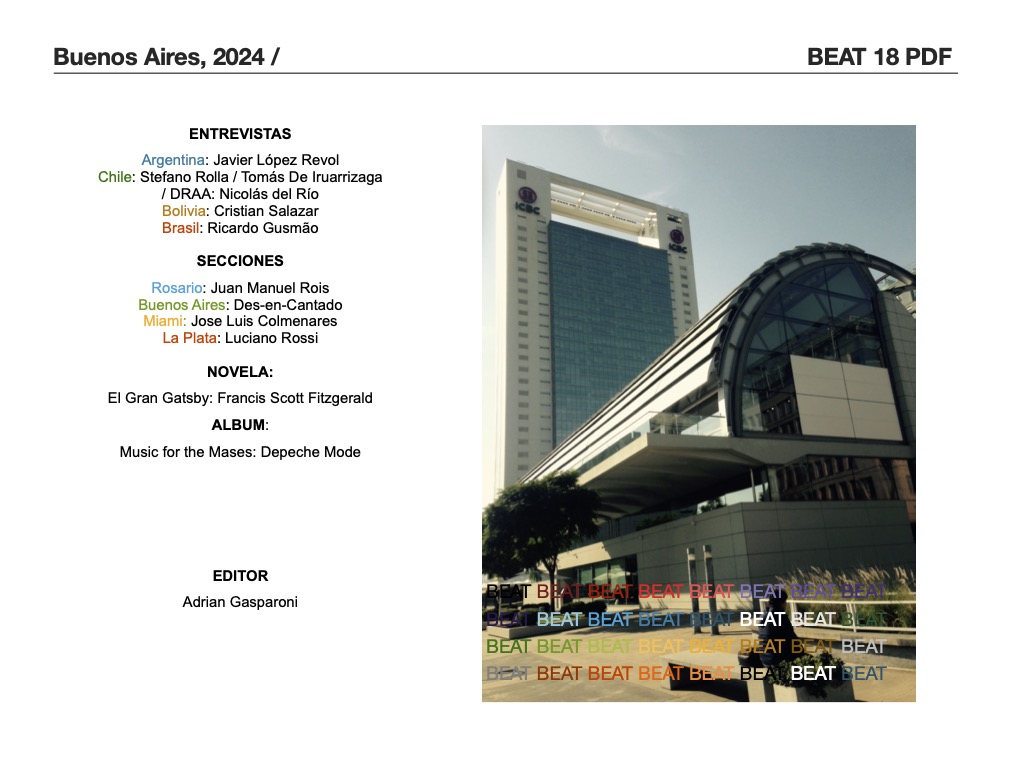 Entrevistas a: Javier López Revol / Stefano Rolla / Tomás De Iruarrizaga / Nicolas del Río / Cristian Salazar / Ricardo Gusmão Secciones con: Juan Manuel Rois / José Luis Colmenares / Luciano Rossi
