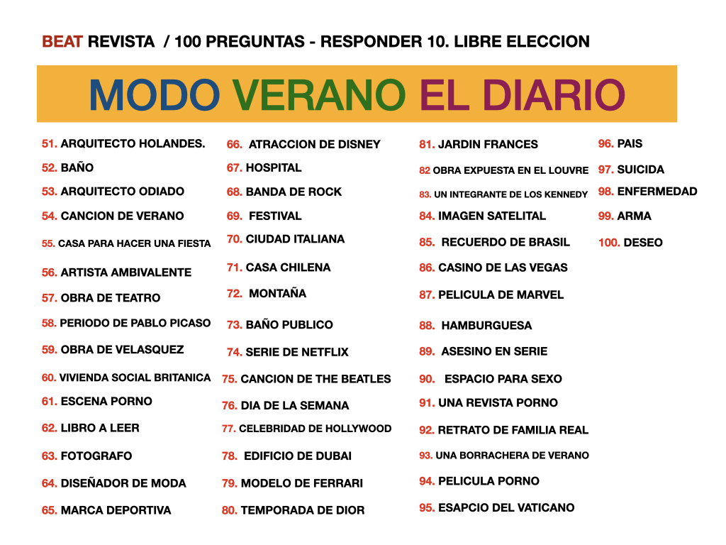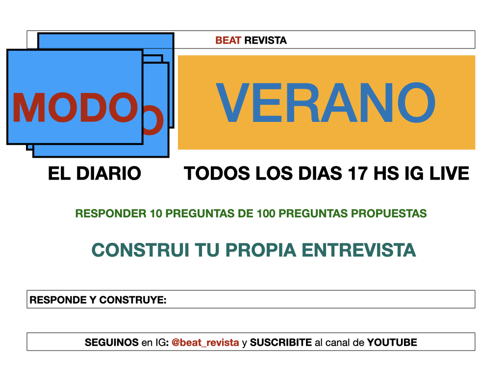 Todos los días a las 17 horas, horario Buenos Aires, realizo entrevistas…, 10 preguntas, la metodología es: EnvÍo 100 preguntas y deben elegir 10 a responder