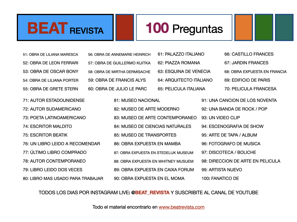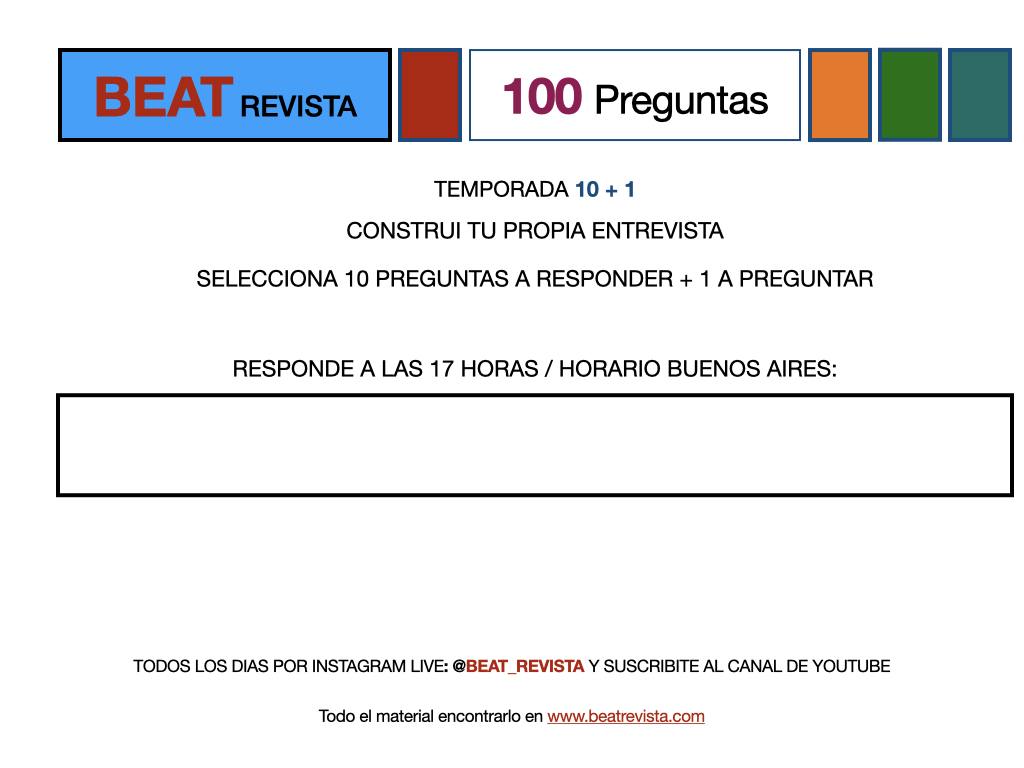 Todos los días a las 17 horas, horario Buenos Aires, realizo entrevistas…, 10 preguntas, la metodología es: EnvÍo 100 preguntas y deben elegir 10 a responder + 1 a Preguntas