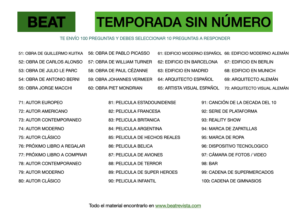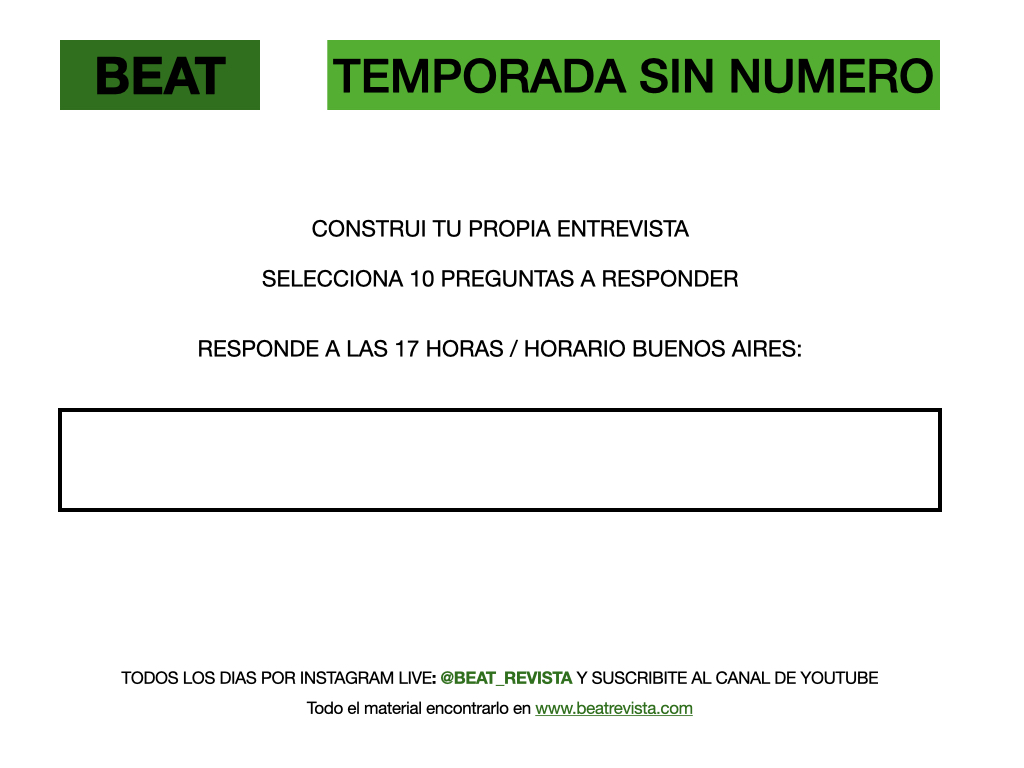 Todos los días a las 17 horas, horario Buenos Aires, realizo entrevistas…, 10 preguntas, la metodología es: EnvÍo 100 preguntas y deben elegir 10 a responder. Construir tu propia Entrevista.