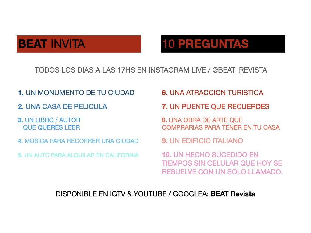 Todos los días a las 17 horas, horario Buenos Aires, realizo entrevistas…, 10 preguntas, la metodología es: EnvÍo 10 preguntas. Todos respondemos las mismas preguntas, no hay jerarquías. Todas respuestas diferentes de las mismas preguntas.